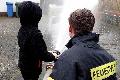 Wie die Rettung aus einem verrauchten Gebäude funktioniert konnte jedes Kind testen und die Fluchthaube anziehen. Anschließend wurden die Fahrzeuge und Boote der Feuerwehr Leutesdorf vorgestellt und jedes Kind konnte selbst mal am Strahlrohr stehen.