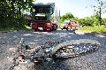Es kam zum Zusammenstoß zwischen Radfahrer und LKW wobei der Radfahrer mit der Front des LKW erfasst wurde. Der Radfahrer kam unter die linke Seite des LKW und wurde mehrere Meter mitgeschleift. Der Radfahrer kam mit Verdacht auf verschiedene Frakturen in ein Neuwieder Krankenhaus.
