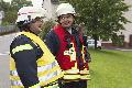 Nach gut einer Stunde war alles unter Kontrolle und der Schaden hielt sich in Grenzen. Für die Atemschutzträger, die innen arbeiteten, war es bei den hohen Temperaturen unter dem Dach ein hartes Stück Arbeit. Sie kamen alle schweißgebadet aus dem Einsatz zurück. Von der Drehleiter aus wurde die Außenhaut kontrolliert, um gegebenenfalls schnell eingreifen zu können. (woti)