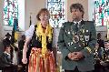 Im Anschluss an die Andacht wurden die neuen Bezirksmajestäten gekrönt. Vorher mussten allerdings die bis dahin amtierenden ihre Insignien abgeben. Bezirksbundesmeister Klaus Wittlich begann dann mit dem neuen Bezirksschülerprinz. Hier konnte sich Felix Rathmann gegen seine Konkurrenten durchsetzen und trägt nun die Kette des Bezirks. Neue Bezirksprinzessin ist Marie Wittlich aus Kurtscheid. Dann machte Wittlich es spannend. Er bekam einen Umschlag, in dem die Ergebnisse waren. Neuer König der Schützenbruderschaften im Bezirk Wied ist nun Dirk Schwarz. Allen neuen Würdenträger zollten die anwesenden Applaus.