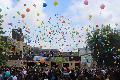 Am Freitag der vergangenen Woche folgte dann der Teil der Abschiedsfeierlichkeiten, in dem die Schülerschaft ihren Dank zum Ausdruck bringen konnte. Dazu wurde Latz auf das Dach der Schule gebracht, um von dort aus zu erleben, wie die gesamte Schülerschaft 500 gasgefüllte Luftballons mit Grußkarten an ihn vom Schulhof aus in den Himmel schickte. Im Anschluss tanzten alle Schülerinnen und Schüler ihm zu Ehren einen heimlich eingeübten Flashmop.