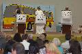 Puderbach. Alle Klassenstufen und das Kollegium hatten in wochenlanger Arbeit Beiträge für die Verabschiedungsfeier vom Schulleiter der Holzbachtalschule Puderbach, Wolfgang Runkel, einstudiert. Liebevoll war der Umschlag für das Programm gebastelt worden, das alle Gäste erhielten. Die Rückwand der Bühne, die in der großen Turnhalle aufgebaut war, zierte ein großes Bild eines Busses. Der Fahrer, Wolfgang Runkel, auf der Seite in großen Buchstaben „Runkels Reise in den Ruhestand“. Diese Bild war aus 54 Kartons hergestellt worden, die auf- und nebeneinander gestapelt worden waren.