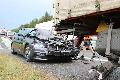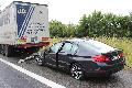 BMW schleudert nach Aquaplaning unter LKW