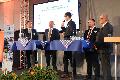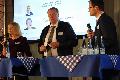 An der Podiumsdiskussion beteiligten sich Dr. Rinklake, Rudolf Röser, Jan Einig und Achim Hallerbach. Großen Raum nahm bei dieser Diskussion der allseits beklagte Fachkräftemangel ein. Dr. Kai Rinklake sagte wörtlich: “Man muss ein attraktiver Arbeitgeber sein, man braucht aber auch eine attraktive Region.“ Dr. Rinklage forderte ein Marketing die gesamte Region. In ihren Wortbeiträgen waren Landrat Hallerbach und Oberbürgermeister Einig unisono einer Meinung, dass zwischen den Ballungsräumen um Frankfurt und Köln/Bonn die Rhein/Westerwald-Region ein starker Wirtschaftspartner sein müsse, um den Anforderungen in der Zukunft gerecht zu werden. Beide Politiker waren sich weiter darin einig, dass man nicht stur an alten Grenzen festhalten solle. OB Einig: „Es darf kein Problem sein, wenn ein Arbeitnehmer in Koblenz arbeitet, aber in Neuwied wohnt, und natürlich umgekehrt.“ Weiter wollen sich beide vehement für den Ausbau von schnellen Internetverbindungen einsetzen. Man sei im Moment schon teilweise bei 50 Mbit, in der nahen Zukunft sollen aber bis zu 100 Mbit erreicht werden können.