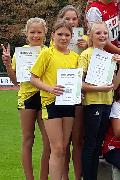 Mit 1.081 Punkten wurde in der Altersklasse W10 Eva Stein Vizemeisterin. Sie warf 30,50 Meter weit, sprang 3,55 Meter weit und sprintete 8,87 Sekunden. Leonie Böckmann folgte ihr mit 1.043 Punkten auf Rang vier, Amelie Schmitt kam mit 933 Punkten auf Rang 8 und Solveig Schreiber mit 847 Punkten auf Rang 10. In der Mannschaftswertung stellten sie mit 5.129 Punkten einen neuen Vereinsrekord auf und wurden Vizemeister. Bei der abschließenden 4 x 50 Meter Staffel beeindruckten Celina, Amelie, Leonie und Solveig mit gelungenen Wechseln. Sie kamen hinter der LG Rhein Wied in 31,48 Sekunden als zweite durchs Ziel.