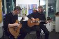 Zwei Künstler gestalten traditionell den akustischen Teil der Vernissage: Das Gitarrenduo Gebrüder Krumscheid brachte selbst komponierte Stücke zu Gehör.