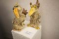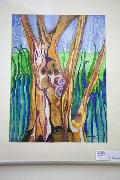 Der Betrachter begegnet zahlreichen Tieren, die gezeichnet, fotografiert und modelliert sind. Ein Krokodil namens Antje steht in Sichtweite eines Nilpferds und zwei pfälzischen „Elwetrittschen“. Auf hauchdünnem transparentem Porzellan tummelt sich der goldene Froschkönig und ein Wolf blickt mit bernsteingelben Augen seinem Betrachter in die Augen. Farbenfrohe Gemälde in Aquarell, Pastell, Acryl und Öl ziehen die Blicke ebenso auf sich wie von innen beleuchtete und durchlöcherte Keramikplastiken. Aus Porzellanbruch wurde ein Mosaik mit dem Titel „Über den Tellerrand“. „Lost place“ heißt eine farblich zurückhaltende Gouache und gegenstandslose Enkaustik-Kompositionen sind einfach nur nummeriert.