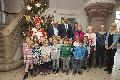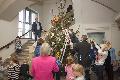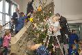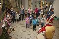 Bei 3,50 Meter Höhe mussten die Kids schon schwindelfrei sein, aber gut gesichert durch die Erwachsenen war es kein Problem den Baum bis in die Spitze mit Hilfe einer Leiter zu schmücken. Nach getaner Arbeit wurde das einstudierte Lied dargeboten und dies lockte den Nikolaus an, der die Treppe herunter geschritten kam. Er freute sich über die Lieddarbietung, die gar nicht enden wollte. Robert Raab, der als Nikolaus auftrat, erzählte den Kleinen so einiges über den Heiligen Mann und bekam seine Fragen vom Nachwuchs beantwortet.