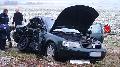Noch an der Einsatzstelle erreichte die Feuerwehr um 15.21 Uhr die Meldung über einen schweren Unfall mit eingeklemmter Person auf der Straße von Lautzert nach Steimel am sogenannten Kaisergarten. Hier war ein 19-Jähriger mit seinem PKW aus Lautzert kommend in einer leichten Kurve ins Schleudern geraten und quer mit der Beifahrerseite auf einen entgegenkommenden KIA geprallt.