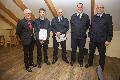 Seit 25 Jahren im Dienste der Feuerwehr stehen Hans-Georg Adams und Timo Runkel. Die beiden bekamen das Silberne Feuerwehrehrenzeichen verliehen. Auf 35 Jahre brachte es Bernd Gerhard Heck. Er bekam das Goldene Feuerwehrehrenzeichen aus den Händen von KFI Böcking.
