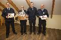 Seit 25 Jahren im Dienste der Feuerwehr stehen Hans-Georg Adams und Timo Runkel. Die beiden bekamen das Silberne Feuerwehrehrenzeichen verliehen. Auf 35 Jahre brachte es Bernd Gerhard Heck. Er bekam das Goldene Feuerwehrehrenzeichen aus den Händen von KFI Böcking.