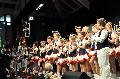 Der Ehrengarde folgte das Tanzcorps der Hafengarde aus Oberwinter. In atemberaubender Weise zeigten die Tänzerinnen und Tänzer das Ergebnis harten Trainings. So hielten einige im Publikum den Atem an, wenn die Tänzerinnen fast die Decke der Halle erreichten. Eine tolle Darbietung, die den verdienten Applaus erhielt. Die „B&B Kapell“ gewann die Herzen der Zuschauer mit ihren gekonnten Interpretationen der „kölschen Lieder“. Erst nach mehreren Zugaben ließ das Publikum die Musiker von der Bühnen.