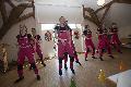 Zu Gast war auch die achtköpfige Kleinmaischeider Juniorengarde mit ihrer Trainerin Yvonne Flammersfeld. Die Garde hatte ihren Show-Tanz „Auf dem Bau“ mitgebracht. Als adrette Bauarbeiterinnen zeigten sie zu flotter Musik einen Tanz mit Spagat und Pyramiden. Auch von ihnen gab es eine Zugabe, bevor sie zu dem Song „Reiß die Hütte ab!“ ausmarschierten.