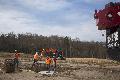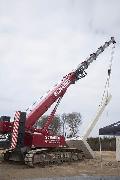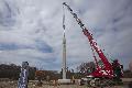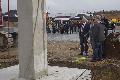 Die Geschäftsführung ihrerseits freute sich über tolle Unterstützung von Seiten der Kommune und des Kreises. Der Dank galt auch den Bauarbeitern, die bei Wind und Wetter Tiefbauarbeiten durchführten, sodass die erste Betonstütze am Donnerstag, 28. März mit einem Kran in die vorbereitete Baugrube gehoben und von den Ehrengästen „getauft“ werden konnte. Die „Taufe“ war spektakulär: Ein Kran hob eine bereitliegende schwere Betonstütze langsam an, schwenkte sie unter den beeindruckten Blicken der zahlreichen Zuschauer, zu denen viele interessierte Mitarbeiter des Unternehmens gehörten, über die vorbereitete Grube und setzte sie exakt ab. Von weiteren Handwerkern wurde das Bauteil ausgerichtet und stabilisiert. Anschließend wurde eine Sektflasche am Pfeiler zerschellt wie bei einer Schiffstaufe.