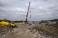 Die weiteren Betonstützen müssen nun nach einer präzise ausgeklügelten Logistik angeliefert und aufgestellt werden. Sie tragen am Ende das weit gespannte Hallendach. htv