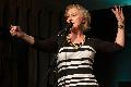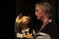Die erste Künstlerin des Abends, Helikoptermutter Andrea Bongers, bejubelte ihre Freiheit, weil nach 21 Jahren ihr Sohn das Haus verlassen hat und sie nun ihren eigenen Bedürfnissen nachgehen kann. Vielleicht, nachdem sie in der Nähe des Kindes eine Wohnung gefunden hat, weil das noch Unterstützung gebrauchen kann. Selbst sieht sich die Mutti, die noch nicht bereit ist für eine Trennung, in der Rolle eines über den Köpfen kreisenden Geiers, der selbst das erste Date mitverfolgte. Weil da nur eine Therapie hilft, greift sie zur Tiertherapie mit der Handpuppe Frau Dr. Snake, die allerdings im Internet eine schlechte Bewertung erhalten hat wegen der Sache mit dem Apfel. Das unsichtbare Bauchreden funktionierte noch nicht, aber die variable Stimmarbeit war gut.