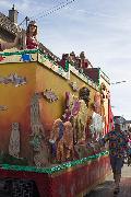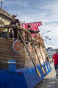 Ebenso den zahlreichen Gardemädchen der Minis, Kinder und Junioren, die vor dem Prunkwagen des Elferrats herliefen. Von diesem hohen Wagen, einem Wikingerschiff, wurden besonders viele begehrte Gaben geworfen. Für die Absicherung sorgte die Freiwillige Feuerwehr.