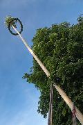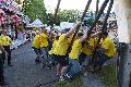 Unter den Klängen des Musikvereins Herschbach fuhr das Kirmespaar mit der Kutsche weiter, dahinter die kräftigen Jungs mit dem Baum auf der Schulter, gefolgt von der restlichen Kirmesgesellschaft und Teile der Bevölkerung. Auf dem Kirmesplatz wurde dann das Wahrzeichen der Dierdorfer Kirmes unter den Augen von hunderten Zuschauern mit Hand aufgestellt. Danach ging es ins Festzelt zum traditionellen Fassanstich durch Bürgermeister Thomas Vis. Der dankte in seiner kurzen Ansprach der Kirmesgesellschaft, dass sie in diesem Jahr die 69. Kirmes ausrichtet und damit zum kulturellen Leben der Stadt Dierdorf beiträgt. Nach Freibier und Eröffnungstanz ging es mit dem DJ „Kix“ mit Hits aus den 80ern und 90ern in eine lange angenehm warme Partynacht. Mit dabei war wieder eine riesige Abordnung aus Rosenheim.