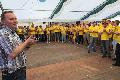 Dierdorf. Am Samstag stand der nächste Höhepunkt an. Die Kirmesgesellschaft trug ihren Kirmesbaum durch die Stadt. Am Marktplatz empfing Stadtbürgermeister Thomas Vis die Mitglieder und überreichte eine Stärkung für die letzten Meter und die schweißtreibende Arbeit den Baum mit reiner Muskelkraft aufzustellen.