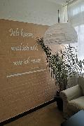 Die Schülerinnen berichteten zudem voller Stolz, dass sie mit ihrem Konzept beim Jugendengagement Wettbewerb in Mainz, an dem insgesamt 31 Projekte von Schülern präsentiert wurden, überzeugen konnten und zur Umsetzung des Ruhraumes 500 Euro erhielten. Nachdem an der Schule die Skeptiker überzeugt und einige Hürden gemeinsam mit der Schulleitung überwunden wurden, haben die Schülerinnen in Eigenregie und mit der tatkräftigen Unterstützung des Hausmeisters, Helmut Dyck, den Raum gestaltet. Hierbei konnte jeder auf seine individuellen Talente und Ressourcen zurückgreifen und so Selbstwirksamkeitserfahrungen sammeln. Diese haben im pädagogischen Konzept der Alice Salomon Schule einen besonderen Stellenwert. Beispielhaft kann hier Melanie angeführt werden, die im Rahmen ihrer vorherigen Ausbildung öfters auf Montage war und daher routiniert ist, Möbel zu foliieren. So konnte sie den Einbauschränken neuen Glanz verleihen.