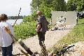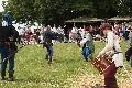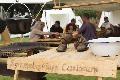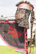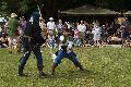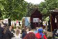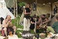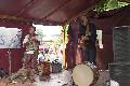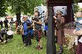 Eine Attraktion waren wie immer die Schwert- und Axtkämpfe der Ritter, bei denen es nicht nur knallende Schläge auf die Schilde gab, sondern auch lautstarke Sprüche und Gegröle, unterstützt durch Sympathiebekundungen der Zuschauer, die die Vorführungen mit viel Handgeklapper belohnten. Solches wurde auch den Musikern auf der Bühne neben den Ständen für Speis und Trank zuteil. Zu leckerem Schweinefleisch gab es musikalische Unterhaltung vom Schweinsleder: Die Sauenscheucher Porcae pellere unterhielten mit Trommeln, Dudelsäcken, Gesang und Jonglage, Bänkelsänger forderten zum Mitsingen von Shanties auf.