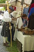Viele kleine Jungen fühlten sich ritterlich nach dem Kauf eines hölzernen Schwerts oder eines Blechhelms. Für die Mädchen standen wunderschöne Kleider und passender Kopf- und Silberschmuck zum Kauf. Mittelalterliche Gewandung konnten auch die Erwachsenen erwerben, daneben Schaffelle und Lederwaren, duftende Seifen, Met, Liköre und orientalische Leckereien sowie Besonderheiten wie „Erblühtee“, kandierten Ingwer und süße Maulbeerbaumfrüchte.