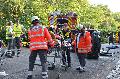 Die Einsatzkräfte standen bei dieser Übung vor besonderen Herausforderungen. Zum einen gab es die Anzahl der Fahrzeuge und Verletzen. Jedes Fahrzeug wurde als eigenständiger Abschnitt behandelt und abgearbeitet. So wurden die Fahrzeuginsassen entsprechen der Verletzungen priorisiert und in Reihenfolge aus den Wracks gerettet. Anschließend wurden die Verletzen Personen an den Rettungsdienst übergeben, versorgt und betreut, bevor diese in die umliegenden Krankenhäuser transportiert wurden. Ebenso war die Außentemperatur gegen 19 Uhr immer noch bei rund 30 Grad im Schatten, was die Arbeit zusätzlich erschwert.