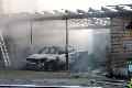 Beim Eintreffen der ersten Kräfte befand sich der Carport sowie der Schuppen bereits im Vollbrand. Das Feuer sprang dann auf das Dach des angrenzenden Wohnhauses über. Anwohner befanden sich zu diesem Zeitpunkt nicht mehr im Gebäude. Die Feuerwehren verlegten mehrere Schlauchleitungen und bekämpften den Brand mit zahlreichen Strahlrohren sowie über die Drehleiter der Feuerwehr Asbach. Die Wehren konnten das Wohnhaus, bei dem das Dach beschädigt wurde, schützen. Insgesamt zwei Personen wurden durch Rauchgasintoxikation leicht verletzt und der Hauseigentümer erlitt einen Schock.