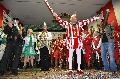 „So einfach machen wir es Dir nicht. Aber Du kannst ja schon mal das Halten proben“, sagte Baffy I. und stellte der neuen Tollität die knifflige Aufgabe, anhand der Stimmen von zu hörenden Karnevalsliedern mindestens vier ehemalige Linzer Prinzen zu erkennen. „Prinz Blitz, Paul Kremer, Christian Siebertz...“, listete Marx weiter auf und schaffte die Herausforderung mühelos, als Keller ihm dann einen verräterisch aussehenden Baseballschläger aushändigte. Bei genauerem Hinsehen entpuppte sich dieser als originelle Verpackung für das Objekt der Begierde. Mit der Pritsch in der Hand jubelte der 76. Prinz der Linzer KG dem närrischen Volk zu, verkündete sein Motto „De Fastelovend, dat ess doch kloor, fiere mer all, met un ohne Hoor“ und sang mit den Adjutanten das Prinzenlied, während das Publikum sich mit dem Dreigestirn freute und schunkelte.