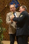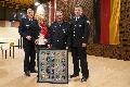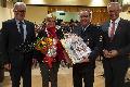 Ehefrau Gabriele Böcking erhielt neben vielen Blumensträußen die Floriansnadel für Feuerwehrangehörige verliehen. Damit wurde gewürdigt, dass sie ihren Ehemann in vielen Situationen unterstützt hat und ihm den Rücken für seine Arbeit freihielt. Die Reihe der Festredner war lang und noch viel länger die Schlange der Gratulanten nach der Veranstaltung.