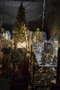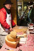Der große mit bunten Holzfiguren geschmückte Weihnachtsbaum bildet wieder den optischen Blickfang am Eingang des „Weihnachtsdorfes“. Direkt dahinter duftet es nach Mandeln und Lebkuchen, daneben bietet ein Markthändler erlesenen Senf in vielen Geschmacksrichtungen und Liköre an. Diese edlen Lebensmittel können genauso wie Essig, Olivenöl, Salami und Käse verkostet werden.
