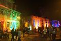 Dort ging es beim Abendmarkt gemütlich zu: bei Getränken und kulinarischen Leckereien kamen die Besucher inmitten der illuminierten Gebäude ins Gespräch. Auf den plötzlichen Ausfall eines Marktbeschickers konnten die Veranstalter leider nicht mehr reagieren, so dass das gastronomische Angebot kleiner ausfiel, als geplant.
