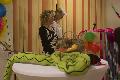 Richtig alt sah die Büttenrednerin aus mit Omas Kapotthut, Handtasche und schwarzem Mantel bei ihrem zweiten Auftritt als Rentnerin, die „gut mit jungen Leuten umgehen kann“. Als es beim Einkauf am Samstagmorgen so richtig voll war im Supermarkt, drängelte sich die alte Dame von der Seite in die Warteschlange an der Kasse und wurde deswegen aggressiv angemacht von einem pickligen Bürschlein mit Kappe verkehrt rum aufem Kopp, der tatsächlich „Oma“ zu ihr sagte. Hysterisch und mit schrägem Blick zur Tochter: „Ich bin doch gar keine! – Oder?“ Da das Wort „Oma“ einer Kriegserklärung gleich kam, musste sich der Jungspund eine Menge Verbalmunition anhören. Nach einem unanständigen Angebot der Oma nahm er schließlich Reißaus. Ergo: „Mit jungen Leuten umgehen, das kann ich!“
