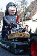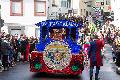 Heimbach-Weis. Nass ging der Zug um 13.44 Uhr los und er endete im Sonnenschein, wobei die kurze Dusche keiner gebraucht hätte. Die Hingucker des Zuges waren mal wieder die Motivwagen, 13 an der Zahl in diesem Jahr. In monatelanger Arbeit wurden sie mit Liebe zum Detail gefertigt. Natürlich wurde die Politik wie der „Brexit“ thematisiert oder auch aktuell die Geschehnisse in Thüringen.