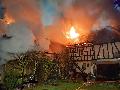 Die Einsatzstelle wurde in mehrere Abschnitte aufgeteilt und neben den Löscharbeiten am brennenden Haus lag das Augenmerk am Anfang darauf, das Übergreifen des Feuers auf die Nachbarbebauung zu verhindern. Dies gelang den rund 90 eingesetzten Kräften. Das große Wohngebäude, eine ehemalige Gaststätte, war allerdings nicht mehr zu retten. Der Dachstuhl brannte völlig weg und das Feuer fraß sich auch in das Obergeschoss. Die restlichen Gebäudeteile sind vom Löschwasser völlig durchnässt. Wegen der bestehenden Einsturzgefahr konnte das Gebäude nicht mehr betreten werden. Nach ersten Einschätzungen entstand Totalschaden am Haus.