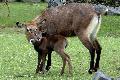Vor zwei Wochen hat auch die Herde der drei Defassa-Wasserböcke Zuwachs bekommen: Ein ebenfalls weibliches Jungtier. Dies ist erst der zweite Nachwuchs der Wasserböcke im größten Zoo in Rheinland-Pfalz. „Als sogenannter Ablieger liegt das Jungtier meist geschützt zwischen den Bäumen und die Mutter kommt in regelmäßigen Abständen zum Säugen“, erklärt Kurator Maximilian Birkendorf. „Unterscheiden kann man die beiden Geschlechter gut voneinander: Die männlichen Tiere haben ein dunkleres Fell als die weiblichen und tragen außerdem Hörner.“