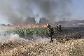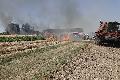 Mähdrescher setzt Feld am Ortsrand von Giershofen in Brand