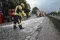 Nach fast viereinhalb Stunden Vollsperrung des Streckenabschnitts, intensiven Reinigungsarbeiten sowie entsprechender Gefahrenbeschilderung konnte der Fahrzeugverkehr wieder freigegeben werden.