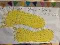 Das Thema Verkehrssicherheit wurde in den Klassen und den Morgenkreisen thematisiert und die individuellen und guten Erfahrungswerte der Kinder ausgetauscht. Ein riesiges Paar gelber Füße wartete beim Betreten der Schule darauf von allen fleißigen Läufern mit den Fingern bestempelt zu werden. So entstand im Laufe der Woche ein sehr buntes Paar Füße, das zeigt: Wir waren in Bewegung und sind zu Fuß gelaufen. Zum Abschluss der Laufwoche konnte der Schulelternbeirat zudem allen Kindern durch eine Spende der Aktion Kinderunfallhilfe e.V. 300 LED-Leuchtbänder für Kleidung oder Ranzen sowie Teilnahmeurkunden vor Schulbeginn an alle Läufer und vorab an die Kita verteilen.