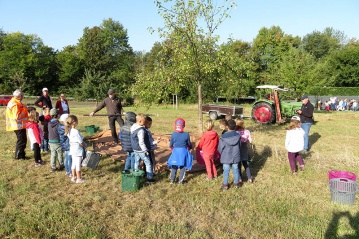 Selbstverständlich konnten die Kinder auch einen Teil der gesammelten Äpfel mitnehmen. Und zu guter Letzt wurde der Schule im Anschluss frisch gepresster und haltbar gemachter Saft aus den gesammelten Früchten zur Verfügung gestellt. Wie man gehört hat, schmeckte der allen Schülern vorzüglich. Auch in diesem Jahr war das Thema“ Äpfel“ Gegenstand des Unterrichts in den beteiligten Schulklassen.