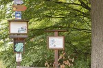 Eine neue „Waldschule“ haben die grünen Männer an anderer Stelle installiert. Anschauungstafeln, Vitrinen und Attrappen veranschaulichen die Waldbewohner, die vor den Menschen fliehen oder unsichtbar Holz und Boden bewohnen. Riech- und Fühlstationen aktivieren alle Sinne und auch noch im Herbst kann man Vogelgezwitscher hören, obwohl die „Ostfriesen-Wohnungen“ sicherlich inzwischen leer stehen.