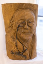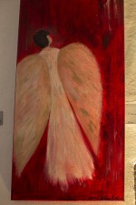 Neuwied-Engers. Ein leuchtend roter geflügelter „Glücksbote“ von Gudrun Vielmuth begrüßt die Ausstellungsbesucher gleich zu Beginn. Am Samstag verhinderte eine Hochzeitsfeier das Betrachten der vielen schönen Kunstwerke im Erdgeschoss, lediglich der erste Stock war frei zugänglich. Dort stellt traditionell der Herr des Silbersees, Werner Scheidweiler neue Fotografien von Elementen seiner Erholungslandschaft aus und präsentiert Plastiken aus Holz und Stein, zum Beispiel „Beethoven“ und Jacques Offenbach, letzterer ist erkennbar an seinem Kneifer. Ein Franz-Stein ist im Entstehen, auf der Vorderseite ist Franz Liszt bereits aus dem Stein gehauen, die Rückseite ist für Schubert reserviert. An der Schmalseite des Steins stehen Moosstängel wie Borstenhaare ab. Scheidweiler sieht und integriert solche Feinheiten.