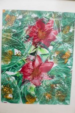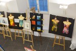 Die moderne Technik der Enkaustik wendet Sabine Koesters an und gestaltet damit Seebilder, Blumen und Abstraktionen. Brigitte Jung beschäftigte sich mit Tieren. Ihre Acrylgemälde „Frosch“ und „Tukan“ leuchteten am Samstag im Treppenbogen. Die übrigen Arbeiten waren im Erdgeschoss gegenüber der barocken Treppe zusammengeschoben.
