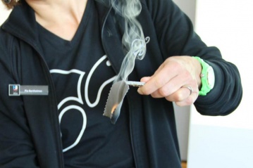 In einem anderen Workshop erfuhren die MBGler den Unterschied zwischen „Workwear“ und der bei HB hergestellten Persönlichen Schutzausrüstung (PSA) hautnah: Eine Flammprobe zeigte, wie schnell Jeansmaterial brennt, während ein flammhemmendes Gewebe die Flamme zum Erlöschen bringt und den Träger schützt.