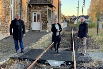 „Dieses wichtige infrastrukturelle Thema werde ich mit nach Mainz nehmen“, so Lana Horstmann, die sich vor Ort zusammen mit Bürgermeister Volker Mendel und Kreisbeigeordneten Michael Mahlert ein Bild machen konnte und überzeugt ist: „Die Reaktivierung der Holzbachtalbahn kann ein Sechser für die Region werden“.