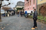 Die Beiden treffen Tobias Velmans am Rheinhotel Schulz, das den Filmschaffenden freundlicherweise auch für den zweiten Drehtag die Nutzung des hoteleigenen Parkplatzes ermöglicht hatte. Gleich nebenan war beim ersten Dreh das Weinhaus zur Traube der Hauptschauplatz. Diesmal stellte das gastronomische Traditionshaus seine Räumlichkeiten als weitere Garderobe vor Ort zur Verfügung – „die Betreiber und Verantwortlichen der Kulturstadt sind wirklich sehr nett und unterstützen uns wo es geht“, lobt der Motiv-Aufnahmeleiter. Ein paar Meter weiter wirkt die Unkeler Vogtsgasse wie ein Bienenstock, dort gibt sich gerade ein Schwarm aus Technikern, Kameraleuten, und Schauspielern in historischen Kostümen ein Stelldichein mit dem Regisseur.
