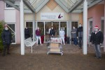 Dann ging es an die Arbeit, denn 450 Päckchen zu packen braucht nun mal eine gewisse Zeit. Der Brief wurde von Diana Jahr entworfen und geschrieben. Pünktlich zum Nikolaustag war alles fertig. Am Sonntagmorgen traf sich das Team als erstes am Seniorenzentrum. Hineingehen war aufgrund der Corona-Beschränkungen nicht möglich. So kamen einige Mitarbeiter vor die Tür und nahmen 54 Päckchen in Empfang. Im Haus wurden die Präsente an die Bewohner weiktergereicht.