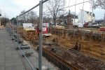Die Vorarbeiten sind umfangreich. Eine Spezialfirma musste das Gelände untersuchen, um eine sogenannte „Kampfmittelfreigabe“ zu bekommen: Das Gebiet ist Verdachtsfläche. Rammt man Träger für die Baugrubensicherung ein, und das ist hier nötig, ist die Freigabe unerlässlich. Gefunden wurde bisher nichts. Gegenwärtig sind die Aushub- und Verbauarbeiten im Gange, anschließend erfolgt eine erneute Untersuchung auf vorhandene Kampfmittel.