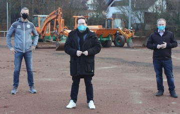 Badziong und Einig informieren zur Baustelle Sportplatz Heimbach-Weis
