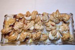 Auf der zweiten Schiebeleiste von unten bei 200 Grad / Heißluft 180 Grad 30 Minuten backen. Die noch warmen Brandteigwindbeutel quer durchschneiden.